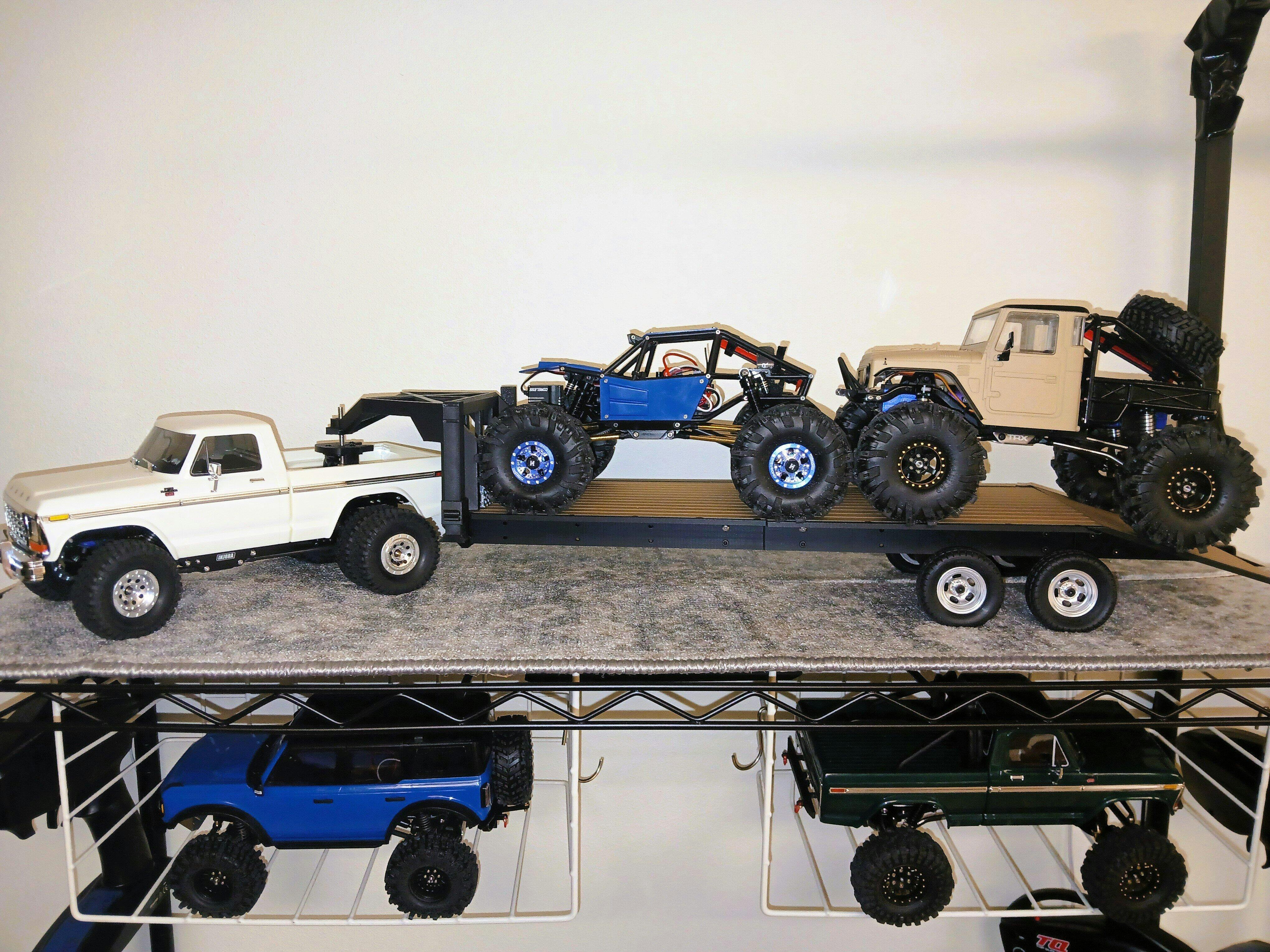 I put this rig behind my trx4m k10 and it looks awesome I put the extra piece in the trailer so it’s 26 inches long plenty of room to haul many toys!!